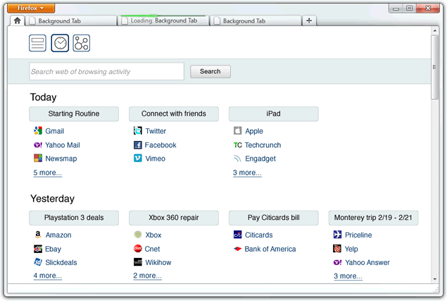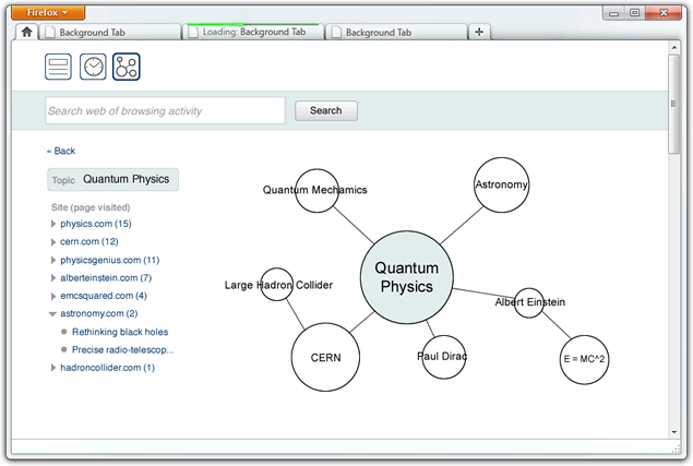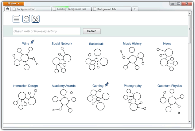 A window into your past experiences has the potential to open a world of thought and possibilities. Today, browser history provides no more imagination than a breadcrumb trail sequencing your online experiences. Usefulness extends little further than your memory can reach. Bubbles and Stacks open a window to your mind, providing the ability to extend your memory and organize your online experiences.