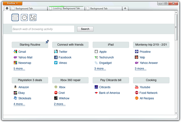 BubbleStacks was a design given the title of Best In Class: Innovation for the Mozilla Labs Home Tab Design Challenge (Winter '09). BubbleStacks was a collaborative interaction design effort created by Chatree Campiranon and myself. Bubbles and Stacks were originally designed for the Firefox web browser but could function just as easily in any browser.